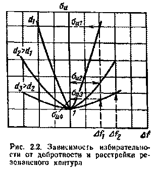 Чем выше добротность контура (то есть меньше затухание), тем выше крутизна скатов характеристики и выше коэффициент избирательности. Входная цепь должна ослаблять помехи по зеркальному каналу и помеху прямого прохождения (помеху по соседнему каналу).