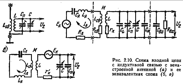 На рисунке представлены принципиальная и эквивалентная схемы входной цепи с индуктивной связью с ненастроенной антенной.